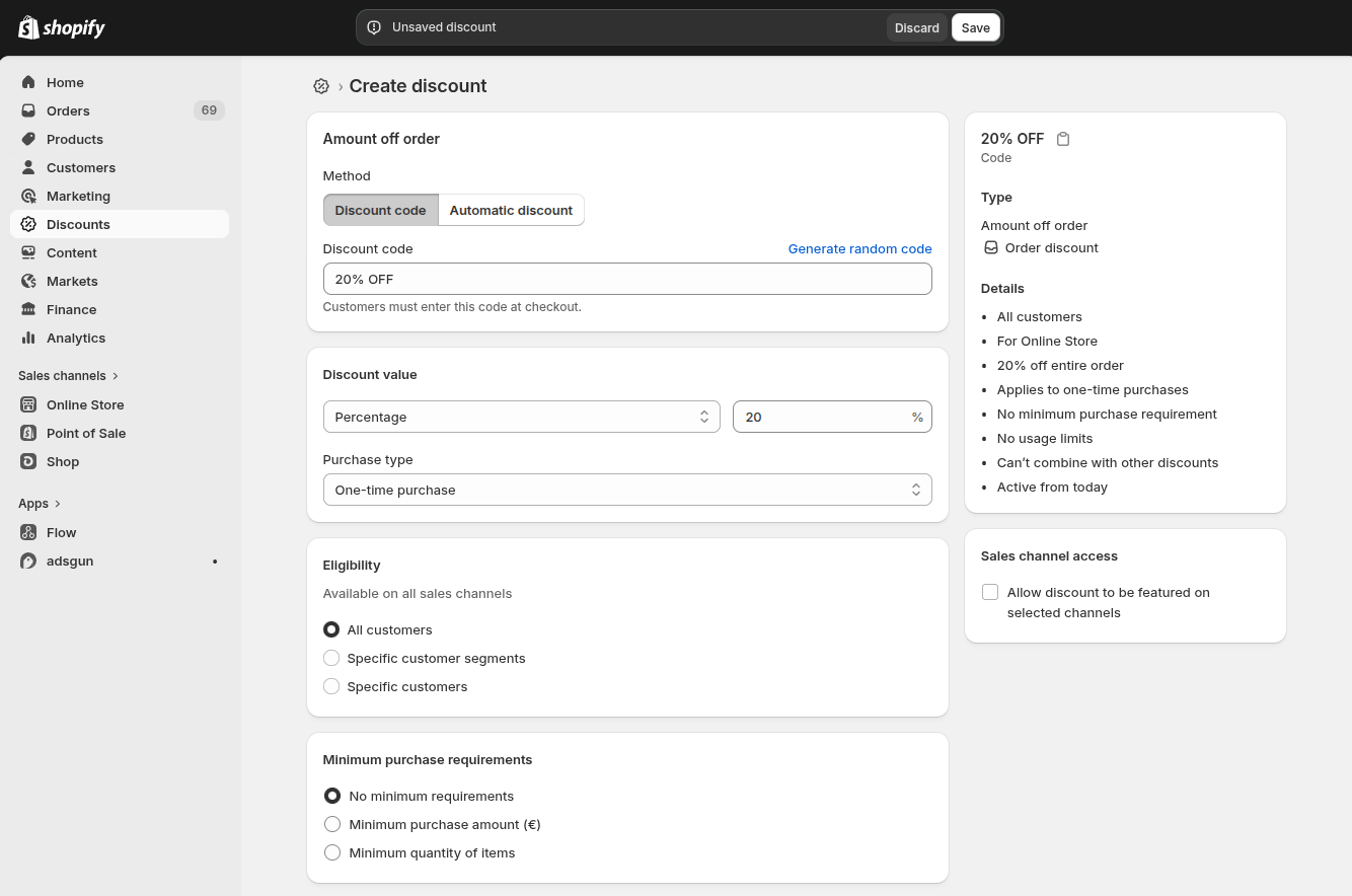 How to create an Adsgun Discount