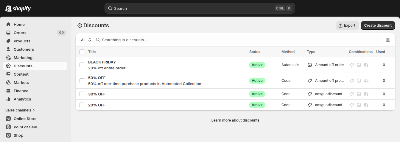 Here is how to create a basic discount directly from your Shopify Admin. This applies to all native Shopify discount types.